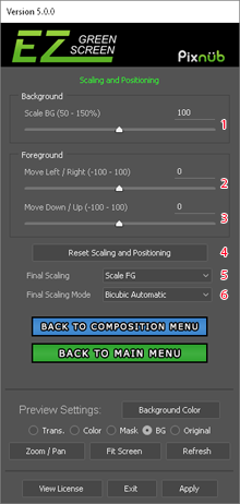 4 - Reset Scaling and Positioning: Resets the BG size and centers the foreground.