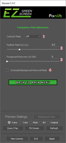 9: Extended Background Removal: This can automatically extract some problem areas in the screen such as shadows, hot spots, and areas with color variation. This WILL NOT fix all issues from improper green screen set up. Also, Using the extended removal mode may erase or partially erase parts of the foreground. In dual mask mode, this IS NOT applied inside the hair region.